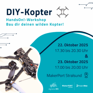 HandsOn Workshop: DIY-Kopter Fertigdrohnen sind nett, aber... Im HandsOn Wortkshop: DIY-Kopter baust du ... 23 Okt. 17:30 - 20:30 MakerPort StralsundWasserstraße 68, 18439 Stralsund, Deutschland