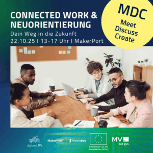 MDC: Connected Work & Neuorientierung Dein Weg in die Zukunft Die Arbeitswelt befindet sich im Umbruch: ... 22 Okt. 13:00 - 17:00 MakerPort StralsundWasserstraße 68, 18439 Stralsund, Deutschland
