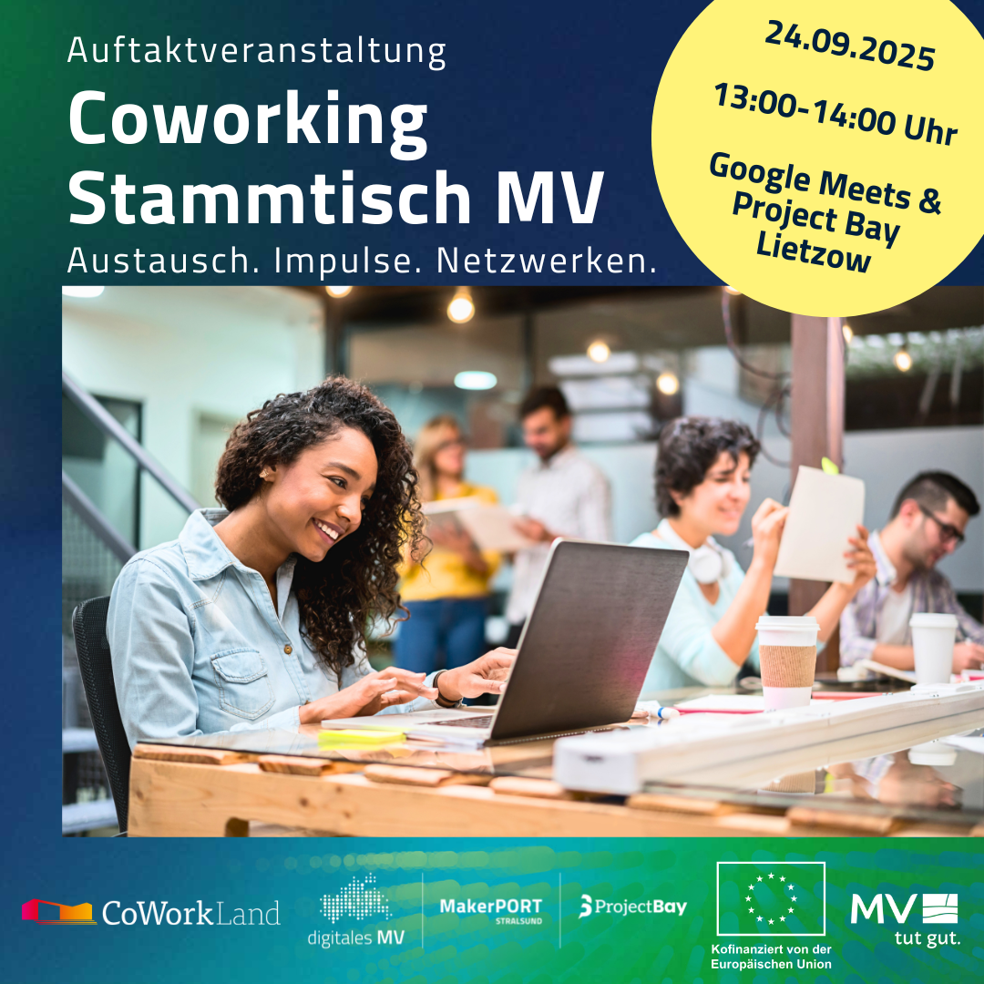 Mit dem neuen Coworking Stammtisch MV laden wir alle ein, die sich mit dem Thema Coworking beschäftigen – ob als Betreiber:in, Netzwerkkoordinator:in, digitale:r Nomad:in, Gründer:in oder einfach Coworking-Fan.