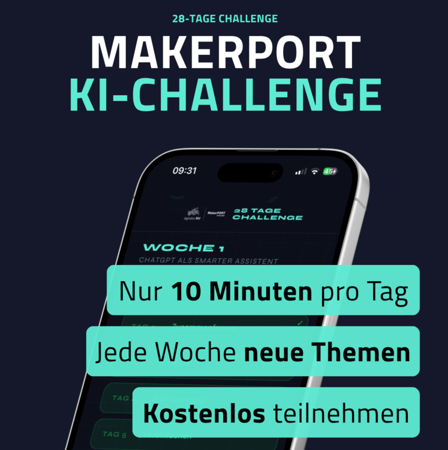 Die Makerport KI Challenge ist eine Lern- und Praxis-Challenge für alle, die künstliche Intelligenz nicht nur ausprobieren, sondern wirklich verstehen und effektiv nutzen wollen.